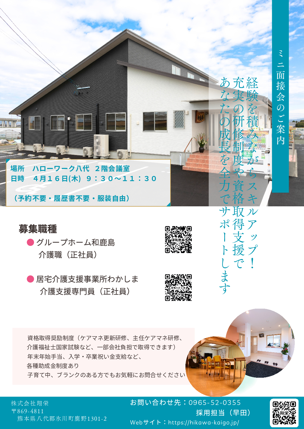 事業所の雰囲気、雇用条件、働き方など、疑問質問を直接聞くことのできる、カジュアルな説明会です。